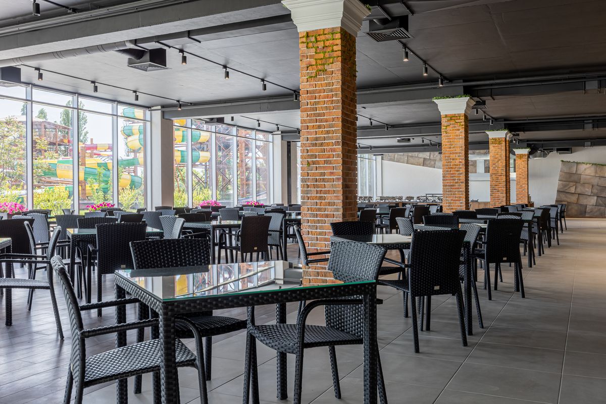 Мы предлагаем вкусное трехразовое питание по системе «шведский столˮ или тариф без питания, который позволяет вам самостоятельно питаться. На территории комплекса расположено 2 ресторана, современный коктейль-бар с разнообразными напитками и снеками расположен возле каждого бассейна в зонах отдыха. В меню ресторана собраны самые популярные блюда европейской, итальянской и украинской кухонь. Специальное детское меню для маленьких гостей комплекса.